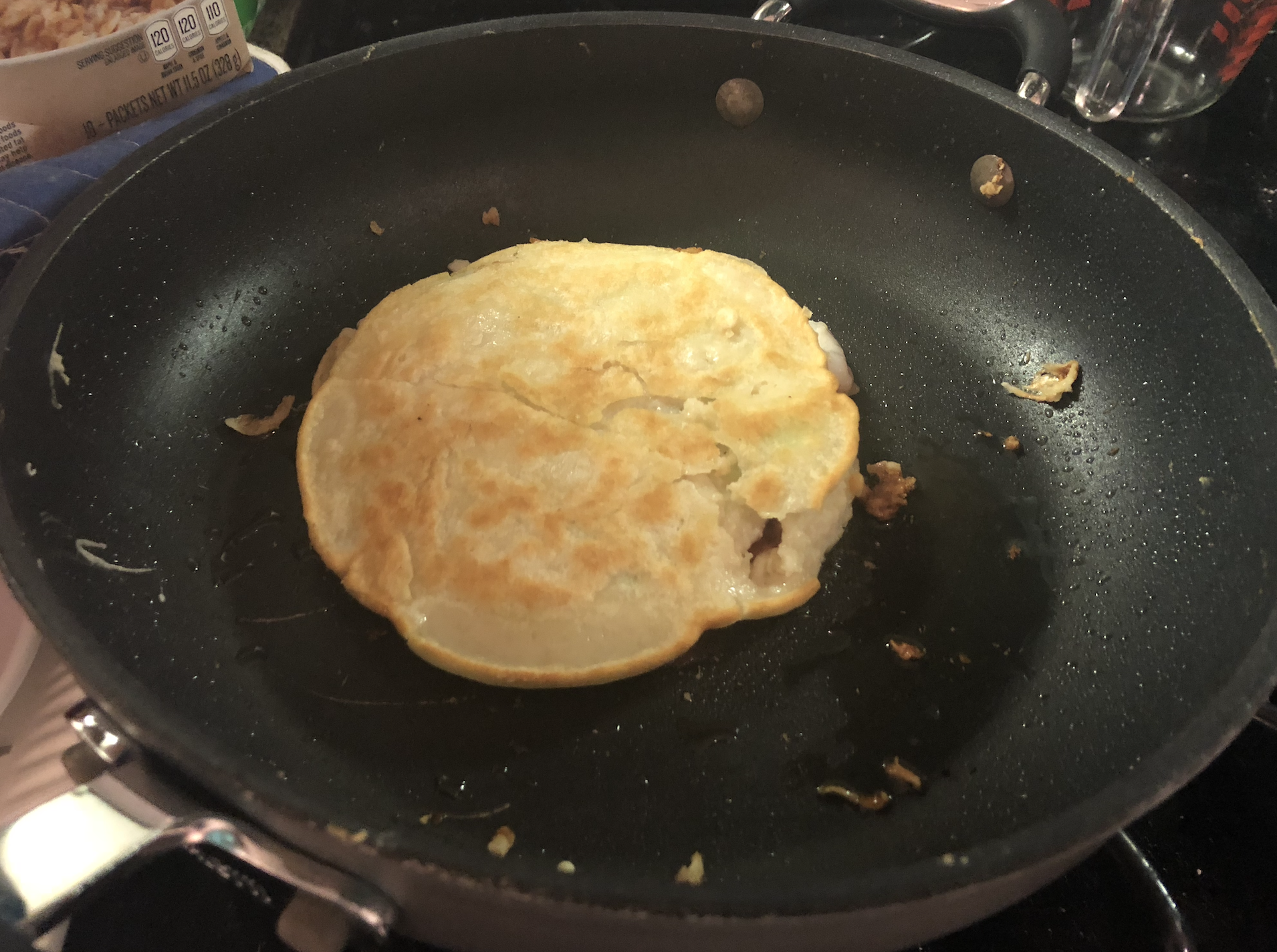 I tried to make Haemul Pajeon (Korean Seafood Pancake). It didn’t exactly look like what was in the book. But it also didn’t look completely wrong.